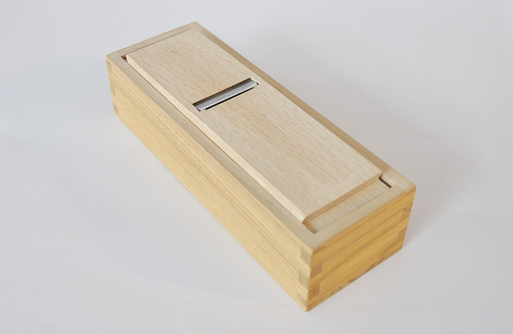 Designed under the theme of Japanese craftsmanship, this bonito shaving plane was created by interior designer Makoto Koizumi. Carefully crafted by skilled plane makers, it delivers a clean, precise cut. The blade is made of Aogami (Blue Paper Steel), valued for its sharpness and long-lasting edge retention. Equipped with a safety holder, it allows you to shave even small pieces of dried bonito safely and with ease. The box is made from durable chestnut wood, known for its strength and refined grain. With continued use, it becomes a familiar and trusted tool in the kitchen. Its compact size fits comfortably in the hand, making it suitable for single-person households or for those trying traditional bonito shaving for the first time. Freshly shaved bonito brings a delicate aroma and depth to everyday miso soup. We hope this is a piece you will use for many years in your kitchen, alongside your miso.
