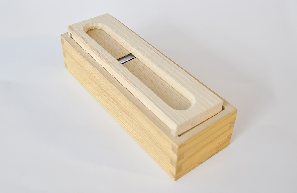「日本のものづくり」をテーマに、インテリアデザイナー・小泉誠が手がけた〈ambai 鰹箱〉。鉋屋が仕立てる、切れ味のよいコンパクトな鰹箱です。刃には、鋭い切れ味と持続性に優れた鋼「青紙」を使用。安全ホルダー付きで、小さくなった鰹節も安心して削ることができます。 箱には、強度と耐久性に優れた栗材を用いました。端正な木目も美しく、使うほどに愛着の湧く道具です。 手に収まるコンパクトサイズで、一人暮らしの方や、はじめて本格的な削りに挑戦される方にもおすすめです。 削りたての鰹節でとった出汁は、いつもの味噌汁をいっそう豊かな味わいにしてくれます。 味噌とともに、日々の台所で長くお使いいただきたい一品です。