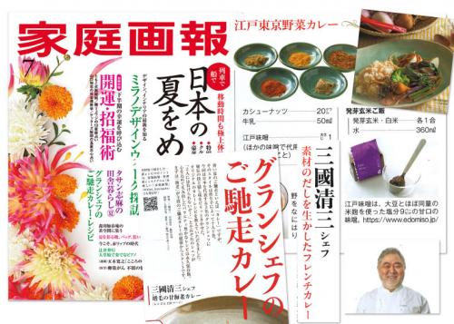家庭画報7月号の特集「グランシェフのご馳走カレー」のなかで、三國清三シェフの江戸味噌を使ったカレーが紹介されました。