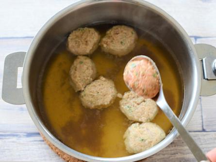 かつお出汁を沸かし、一口大に丸めた2を入れる