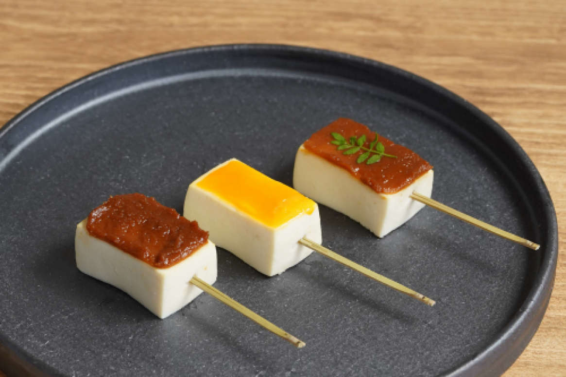 卵黄を塗って焼いた田楽を彩りに添えると華やかな一皿に。